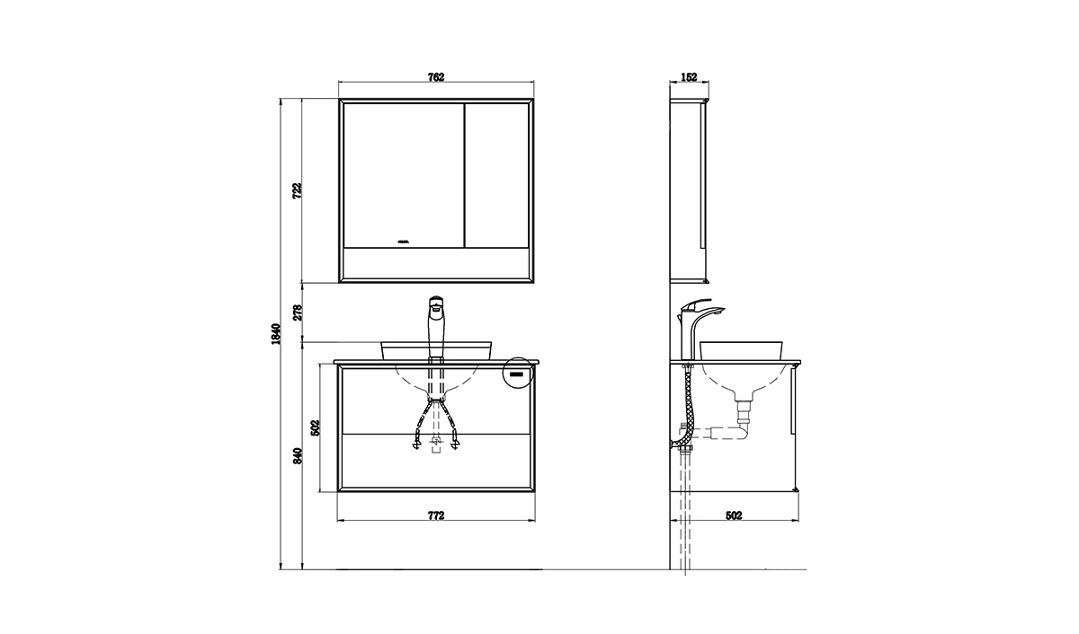 mirror cabinet size: 762*722*152mm