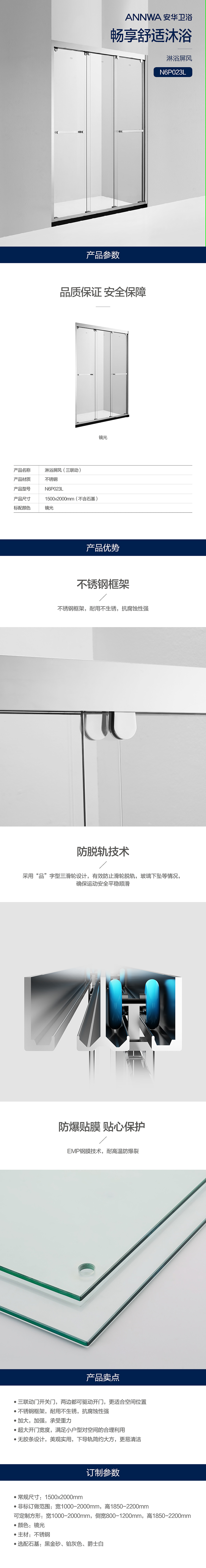 3.无胶条设计,美观实用,下导轨简约大方,更易清洁。