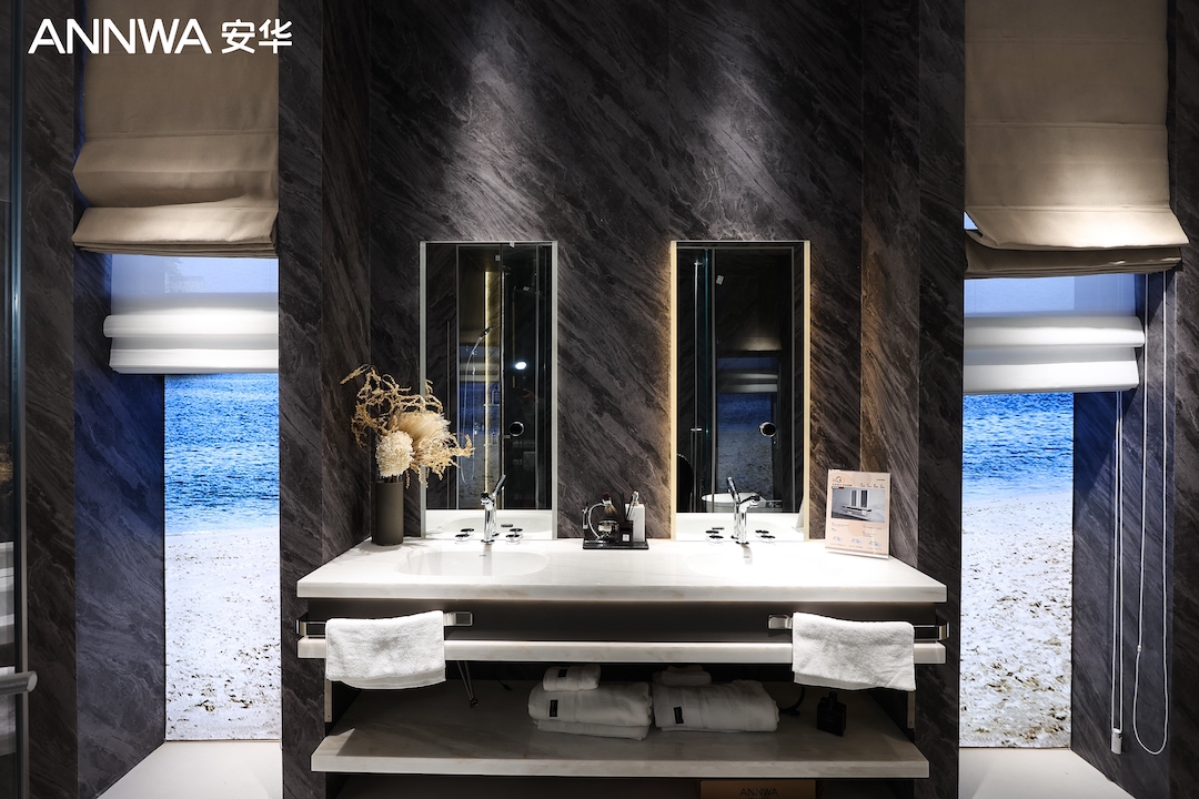 本届展会,ANNWA安华推出智能马桶、淋浴花洒、龙头、浴室柜、艺术盆、淋浴房、浴缸等一站式全卫场景解决方案,以技术破局、产品为支点,撬动酒店卫浴空间的全面革新。