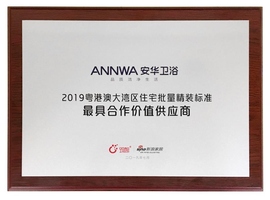 On July 10, the conference of Full Decoration Residence Quality Development Forum and the 2019 White Paper For Handover Standard of Furnished Residence of Guangdong-Hong Kong-Macao Greater Bay Area at Guangzhou building exhibition grandly. ANNWA was invited to attend at the meeting and was awarded the 2019 Guangdong-Hong Kong-Macao batch residential building hardcover standard “the most cooperative value supplier” held by the sponsor.