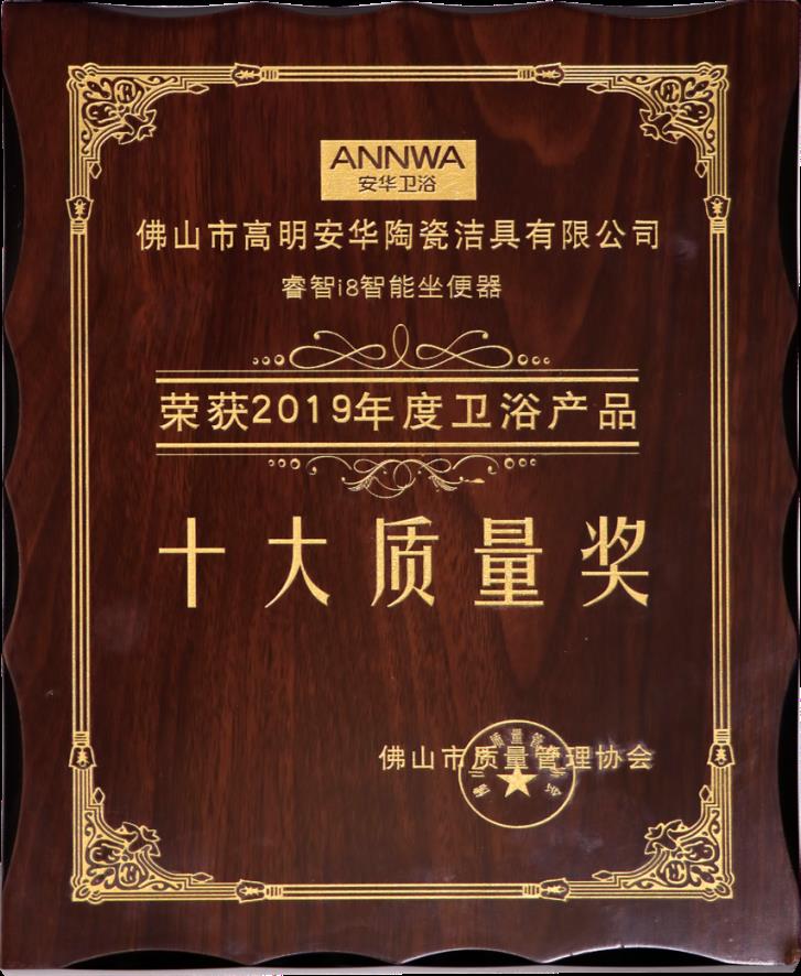 On May 28, ANNWA stood out from tens of sanitary ware brands by virtue of powerful enterprise strength, excellent performance and brand influence and was awarded 2019 "Sanitary Products Top 10 Quality Award".