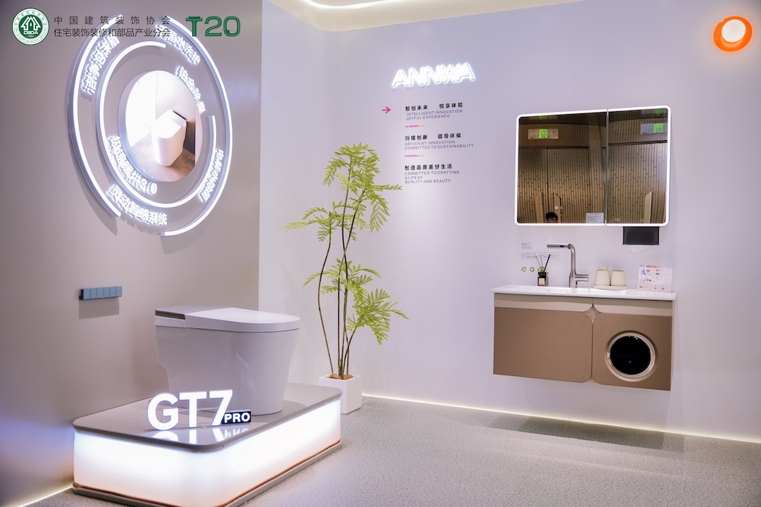 本次家装展会,ANNWA安华卫浴携全新的智能卫浴空间惊艳亮相,带来多款明星新品——GT7Pro元净智能坐便器、T8零冷水按摩置物花洒、锦柔系列洗烘一体浴室柜,以智能卫浴空间整体解决方案诠释健康、智能、多元的当代卫浴生活方式。